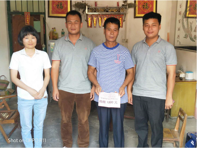 “我们代表公司来慰问你们,希望能帮助你们渡过难关,早日战胜病魔……”近日,盛铭公司总经理助理黄韦康、生产主管韦武大等4人前往陶邓乡川山村,看望盛铭公司员工刘敏辉病重的母亲,并送上了1000元爱心款和慰问品。