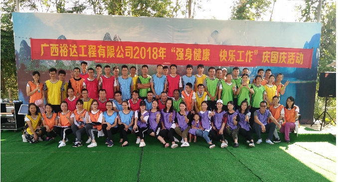 为庆祝国庆”69周年,丰富员工的文体生活,展示员工良好精神面貌,推进公司精神文明建设、增强员工团队协作力及工作凝聚力。930日,工程公司在来宾铭禹山庄举办强身健体、快乐工作庆国庆活动。