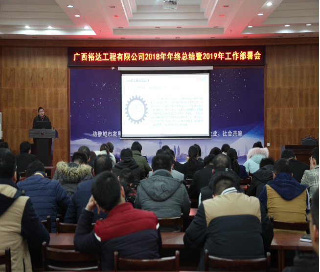 为全面总结2018年工作的成绩,及时分析存在的困难与问题,明确2019年重大工作目标任务及管控思路。18日上午,我公司在集团7楼会议室召开2018年工作总结暨2019年工作部署会,公司全体员工参加会议。