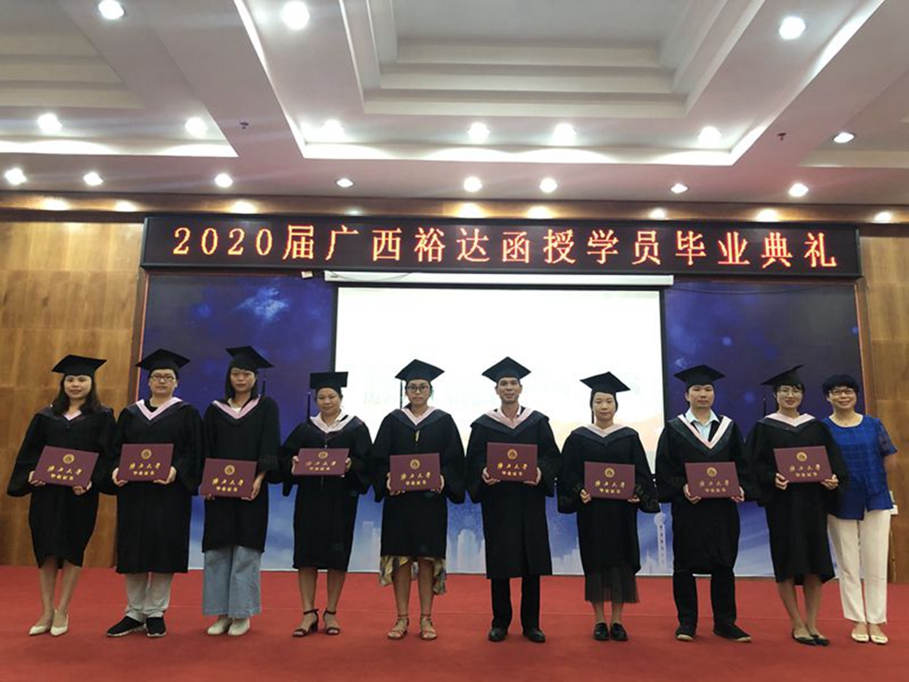 接着,广西人才市场学习中心部长助理黄淑文老师发言,她对裕达函授站自2015年合作办学至今取得的成绩给予了充分肯定,同时期望毕业生学有所成,学有所用,不断超越自己、在未来取得更加辉煌的成绩。