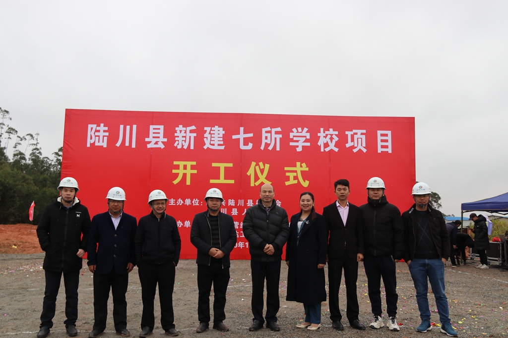 12月15日上午,工程公司承建的陆川县新建七所学校项目在陆川县城西初级中学项目现场举行开工典礼。陆川县人大常委会主任丘妙军、副主任丘玉梅、县人民政府副县长曾敏、县教育局局长黎颜、广西民营经济投资发展集团股份有限公司董事副总裁梁欢、工程公司总经理权龙福等领导嘉宾参加仪式。