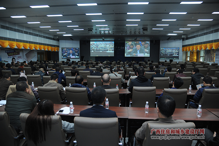 3月10日,广西住房城乡建设厅召开全区住宅工程质量满意度四年提升专项行动启动电视电话会,启动并部署全区住宅工程质量满意度四年专项提升行动。广西住房城乡建设厅厅长严世明、副厅长杨绿峰出席会议并讲话,会议由建筑市场监管处处长莫兰新主持。