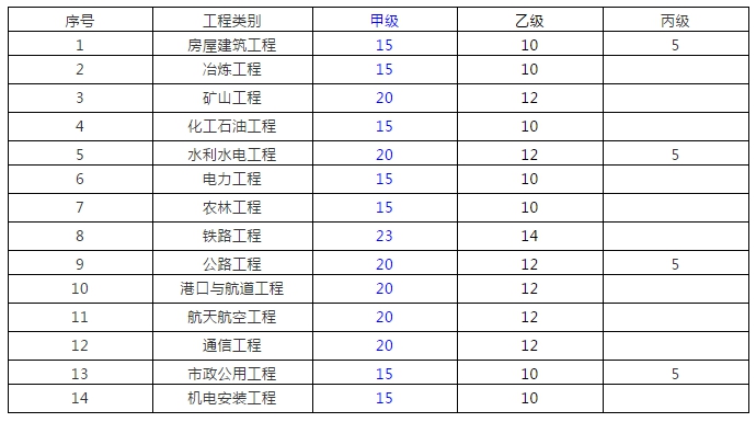 编者注:根据通知,专业甲级注册人员要求修改为:(3)注册监理工程师、注册造价工程师、一级注册建造师、一级注册建筑师、一级注册结构工程师或者其它勘察设计注册工程师合计不少于15人次。其中,相应专业注册监理工程师不少于《专业资质注册监理工程师人数配备表》(附表1)中要求配备的人数,注册造价工程师不少于1人。