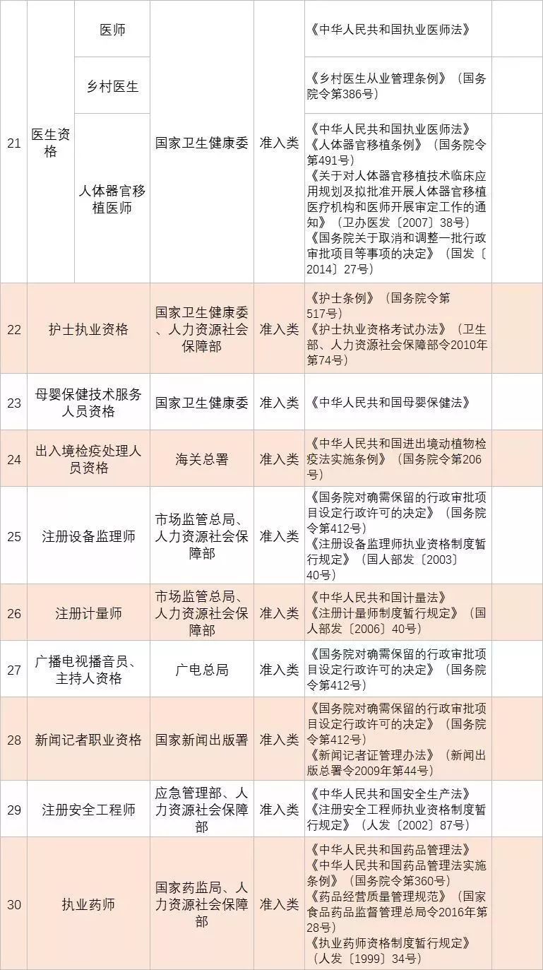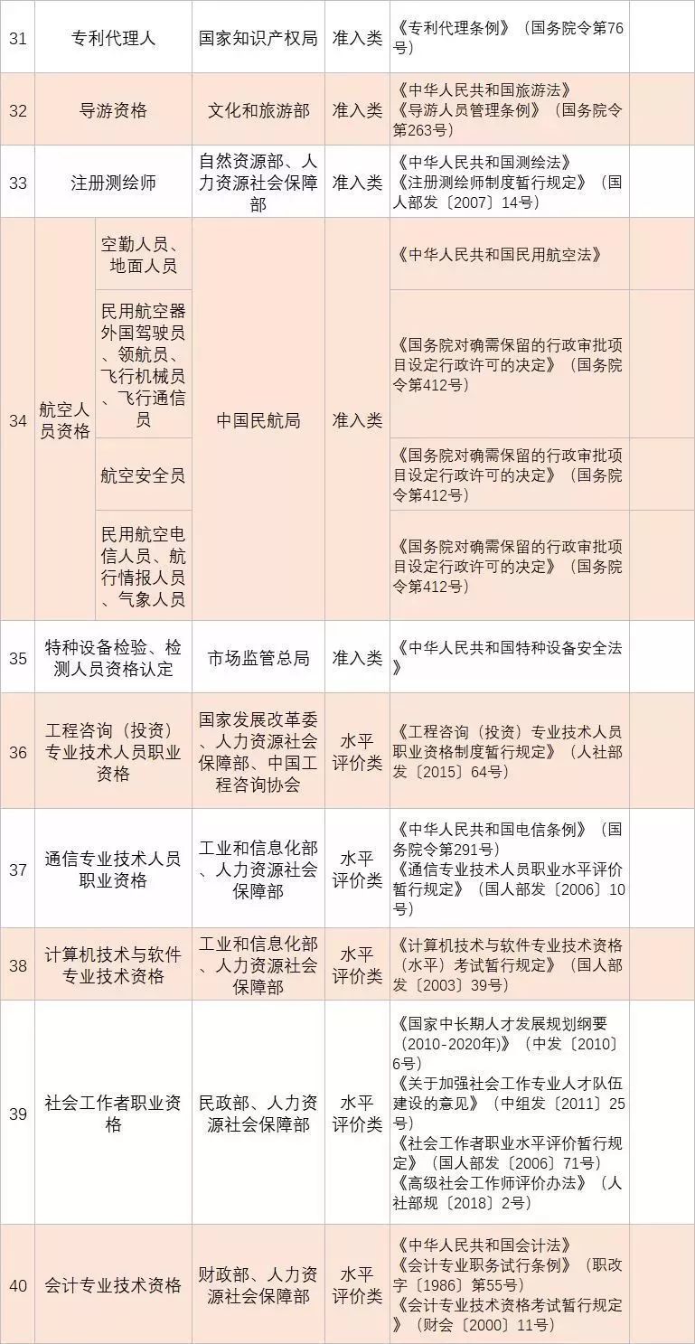 共计139项职业资格,专业技术人员职业资格58项(准入类35项、水平评价类23项),技能人员职业资格81项(准入类5项、水平评价类76项)。