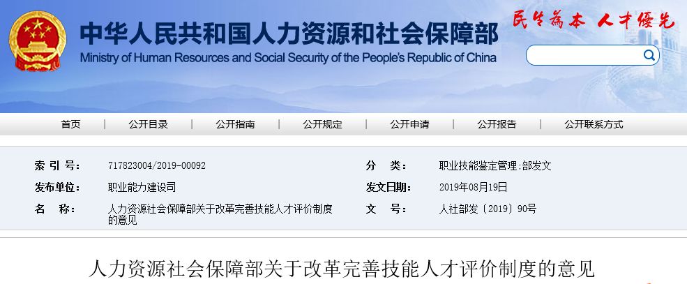 近日,人力资源社会保障部印发了《关于改革完善技能人才评价制度的意见》。
