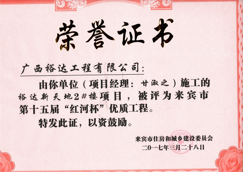2017年来宾市第十五届“红河杯”优质工程