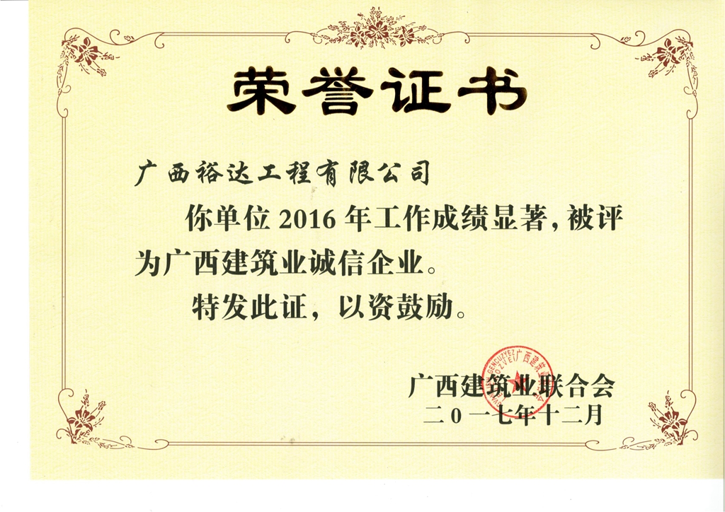 2017年广西壮族自治区工法证书(可调节杆式悬挂脚手架施工工法证书)